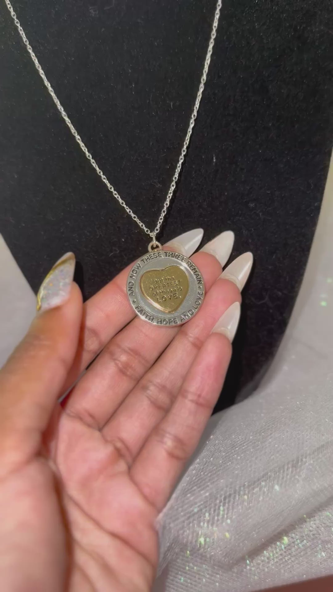 Embrace your bold and adventurous spirit with our 1 Cor 13:13 Necklace. This beautiful and unique statement piece features a flip design, revealing a special bible verse. Versatile and timeless, it's the perfect accessory to showcase your faith.